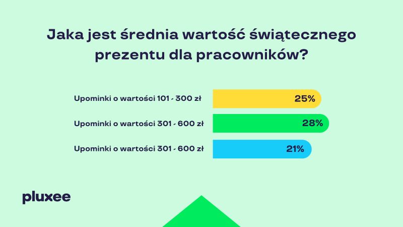 • Pracownicy najczęściej otrzymują świąteczne upominki o wartości 101-300 zł (25%), 301-600 zł (28%) oraz 601-1000 zł (21%).